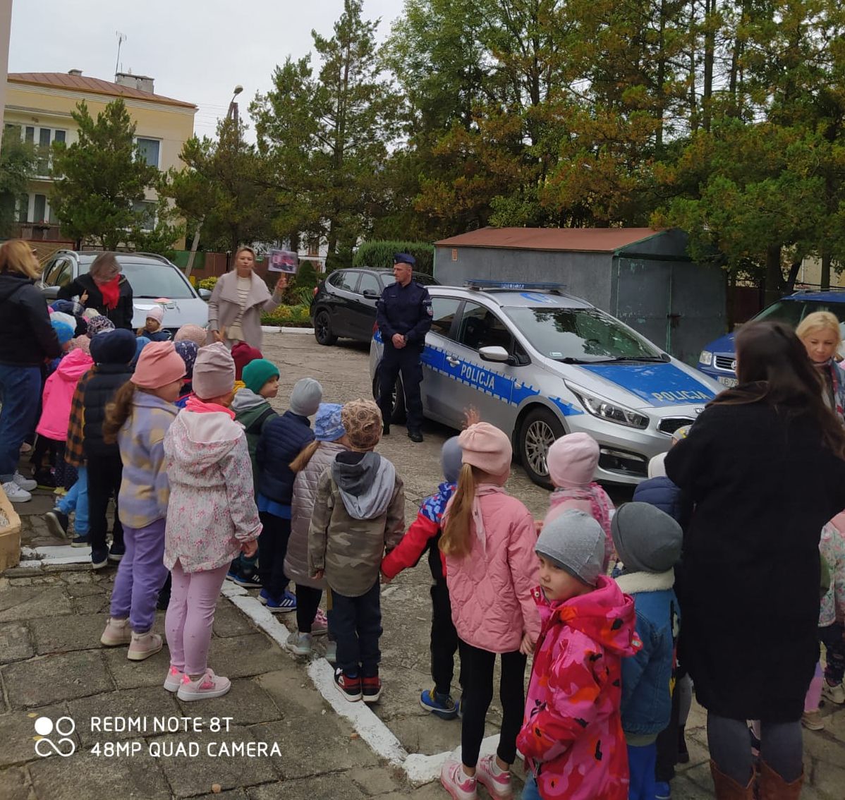 Maluchy usłyszały także ciekawostki związane z pracą w Policji. Słuchały na czym polega zawód policjanta i jak wygląda codzienna służba. Z bliska zobaczyły policyjny radiowóz oraz podstawowe wyposażenie do służby.