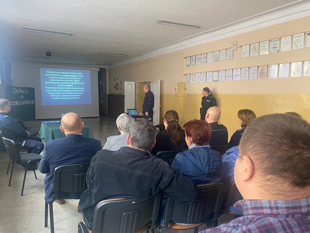 Celem debat społecznych jest diagnozowanie potrzeb i oczekiwań społeczeństwa w zakresie poprawy bezpieczeństwa. W dzisiejszym przedsięwzięciu uczestniczyli przedstawiciele Policji, władz samorządowych, radni, kadra pedagogiczna, uczniowie oraz mieszkańcy gminy.
