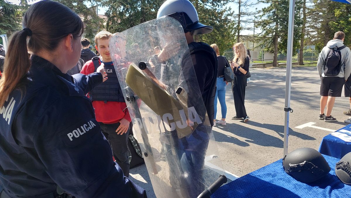 Policjantki zajmujące się profilaktyką zaprezentowały film przedstawiający przebiegu szkolenia zawodowego podstawowego policjantów. Chętni mogli porozmawiać z technikiem kryminalistyki, który wyjaśniał do czego służą przedmioty, z których korzysta przy zabezpieczaniu śladów kryminalistycznych. Dużym zainteresowaniem cieszyło się spotkanie z policyjnym przewodnikiem psa służbowego i jego czworonożnym podopiecznym Jazgotem.