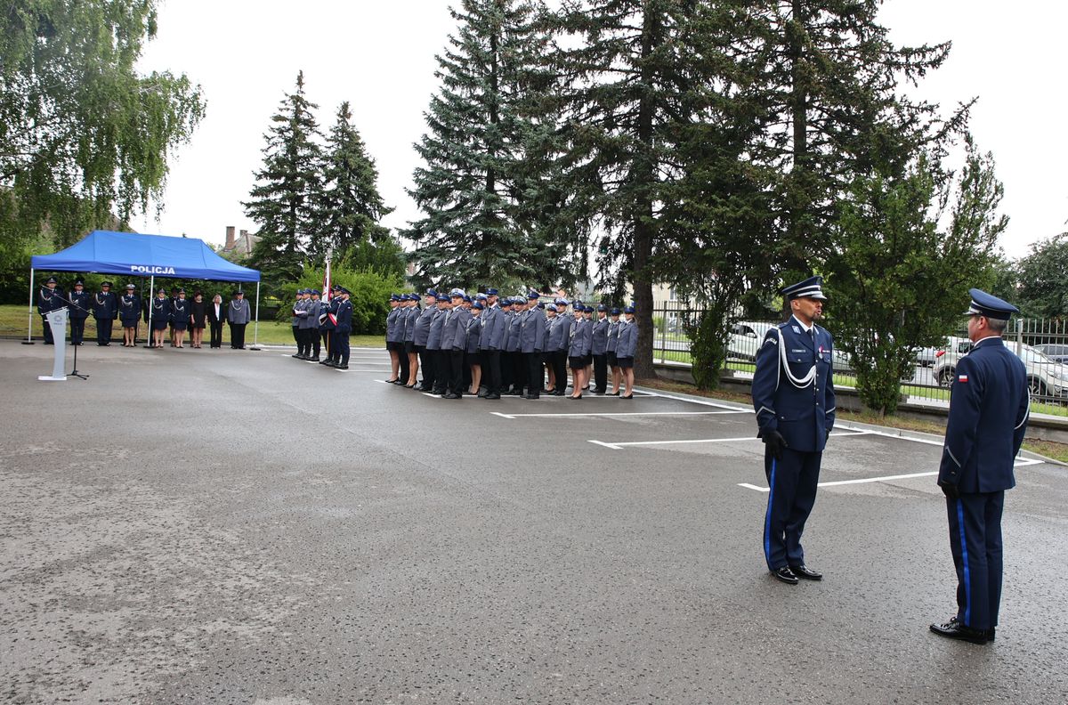 Po tym wręczone zostały akty nominacyjne na wyższe stopnie policyjne w korpusie aspirantów, podoficerów i szeregowych. W tym roku awanse otrzymało łącznie 80 policjantów, w tym 7 zostało wyróżnionych przedterminowym awansem. Następnie odbyło się wręczenie pamiątkowych ryngrafów za długoletnią służbę asp. szt. Kazimierzowi Szewczukowi oraz asp. szt. Sławomirowi Nachuniakowi, którzy w policyjnym mundurze spędzili ponad 40 lat.