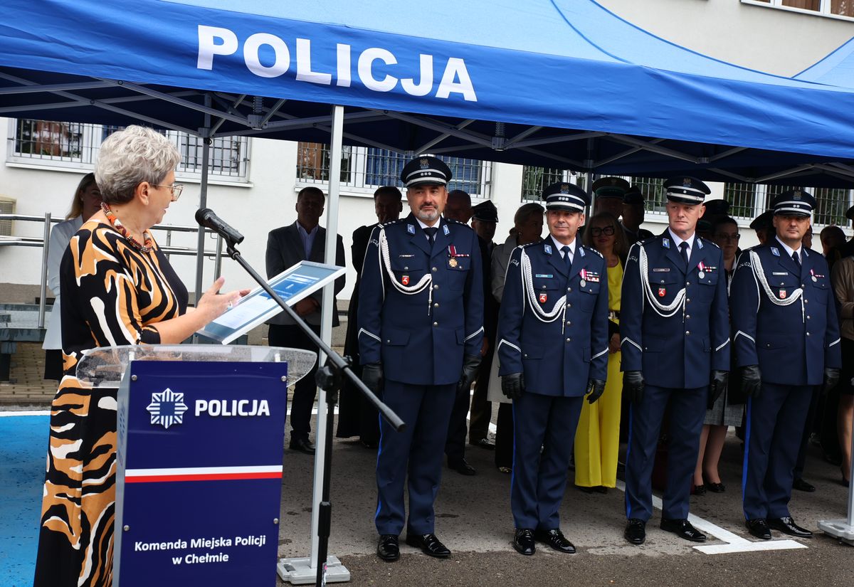 W dalszej części uroczystości Komendant Miejski Policji w Chełmie mł. insp. Marian Pisklak przywitał zaproszonych gości i wygłosił okolicznościowe przemówienie, w którym gratulował awansowanym policjantom i życzył dalszych sukcesów. W swoim wystąpieniu podziękował też przedstawicielom samorządów lokalnych za dobrą, a wręcz wzorową współpracę w zapewnieniu bezpieczeństwa mieszkańcom naszego regionu. Podziękował też funkcjonariuszom i pracownikom za trud, wysiłek i zaangażowanie w rzetelne wypełniania obowiązków służbowych. Słowa podziękowań skierował także do rodzin policjantów, służb oraz innych osób i instytucji, które na co dzień wspierają chełmskich policjantów.