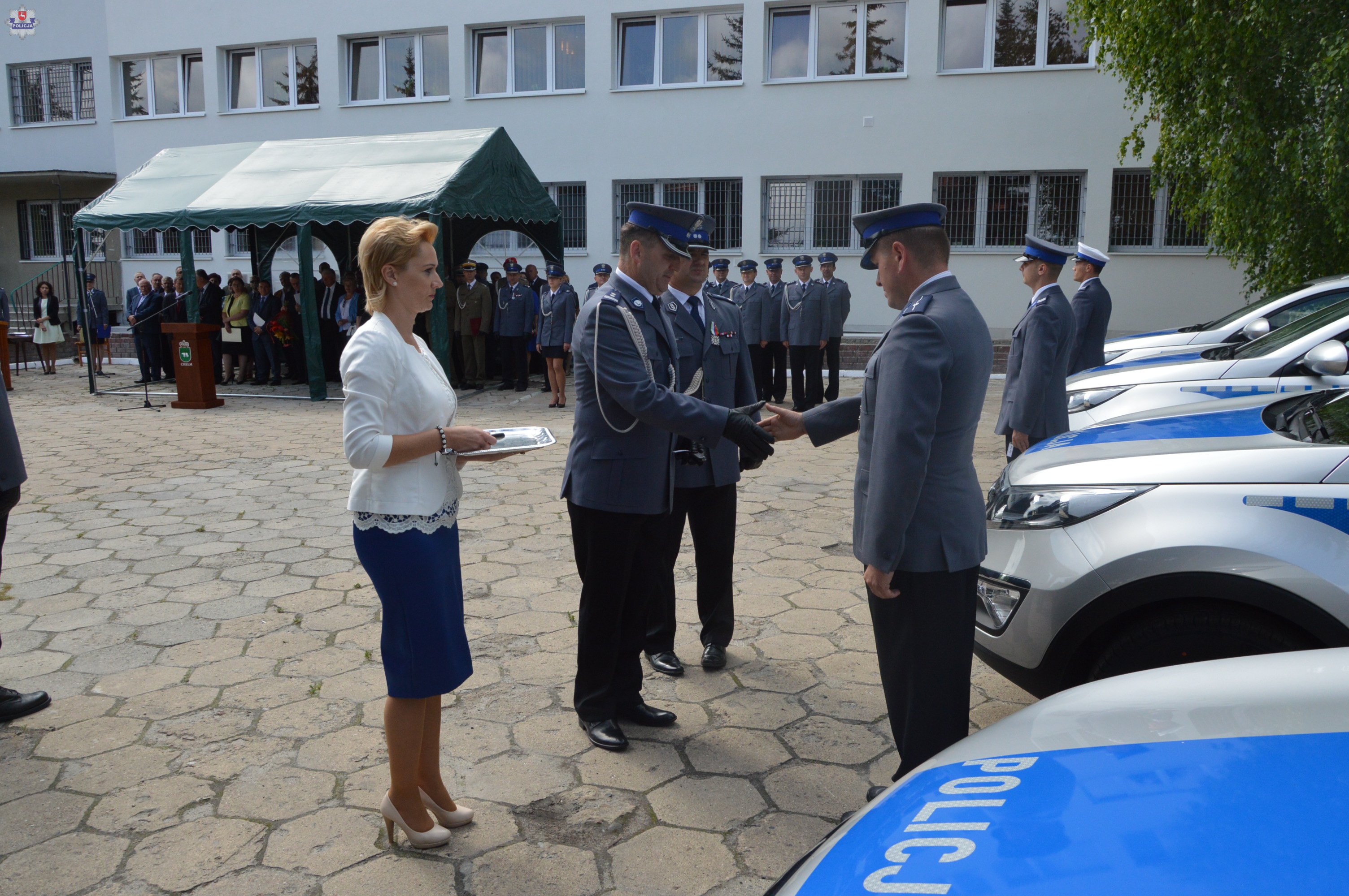 mł. insp. Włodzimierza Pietronia oraz zaproszeni goście. Swoją obecnością zaszczycili nas przedstawiciele parlamentu, urzędu marszałkowskiego, władz samorządowych, służb mundurowych i różnych instytucji, z którymi na co dzień współpracuje Policja. Podczas tej uroczystości funkcjonariuszom zostały wręczone awanse na wyższe stopnie policyjne, odznaczenia oraz nagrody pieniężne. W tym roku awansowało 78 funkcjonariuszy. Następnie odbyła się ceremonia przekazania nowych oznakowanych radiowozów marki Kia Sportage. Wyznaczeni funkcjonariusze odebrali z rąk Zastępcy Lubelskiego Komendanta Wojewódzkiego kluczyki do tych pojazdów. Samochody te zostały zakupione ze środków unijnych pozyskanych w ramach projektu „Razem na rzecz bezpieczeństwa województwa lubelskiego i obwodu wołyńskiego”. Przedsięwzięcie to realizowane jest przez Komendę Wojewódzką Policji w Lublinie oraz Zarząd MSW Ukrainy w Obwodzie Wołyńskim.