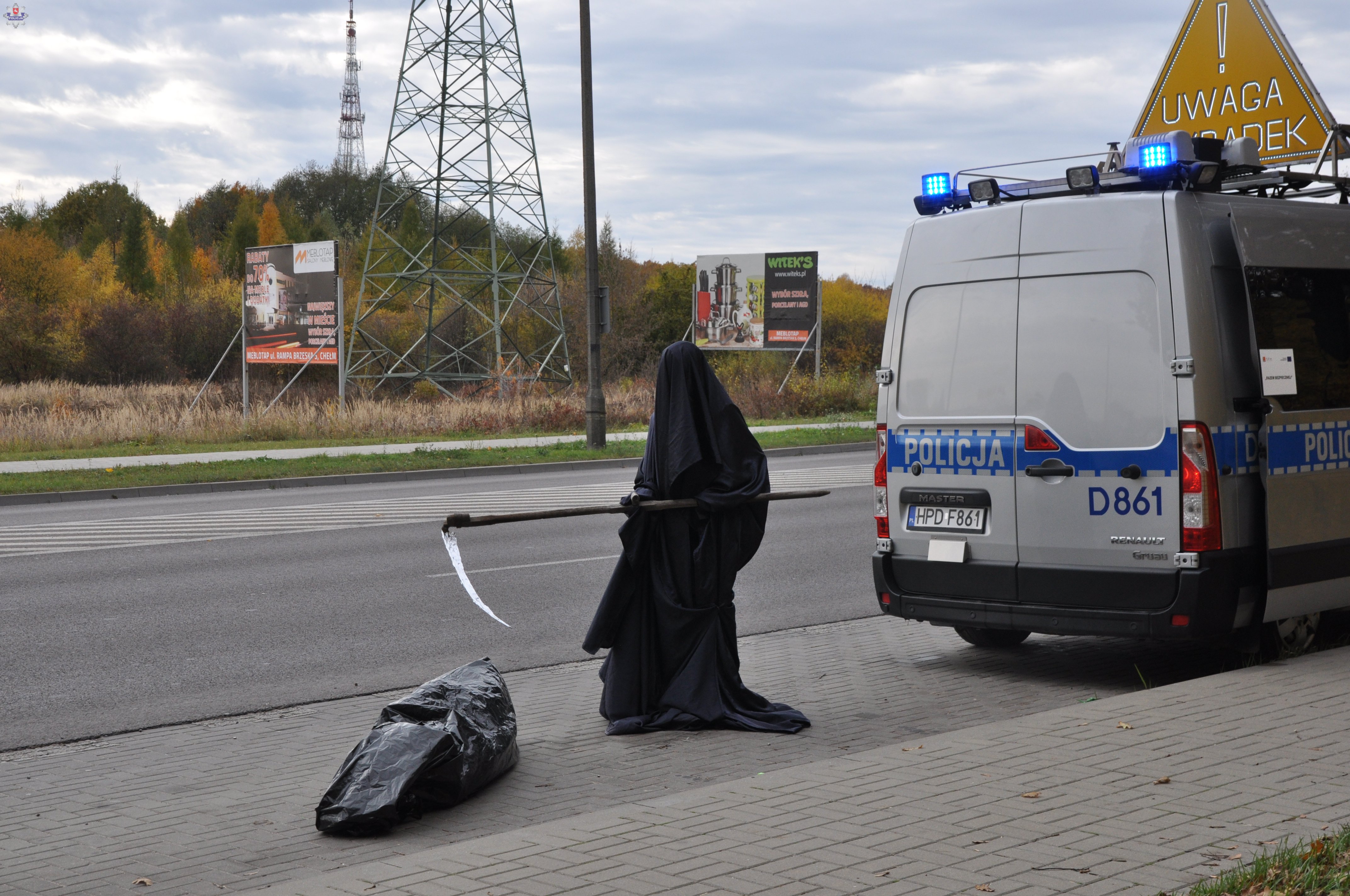 Już po raz drugi „Bezpieczeństwo na drodze” było tematem przewodnim plenerowej akcji zorganizowanej przez chełmską drogówkę i Automobilklub Chełmski. Realizowana była wczoraj na trasie wyjazdowej z Chełma w kierunku Lublina. Jej celem było zwrócenie uwagi na bezpieczeństwo w ruchu drogowym. Kierujący wyjeżdżający z miasta mieli okazję zobaczyć obraz sugerujący tragiczne w skutkach zdarzenie drogowe.