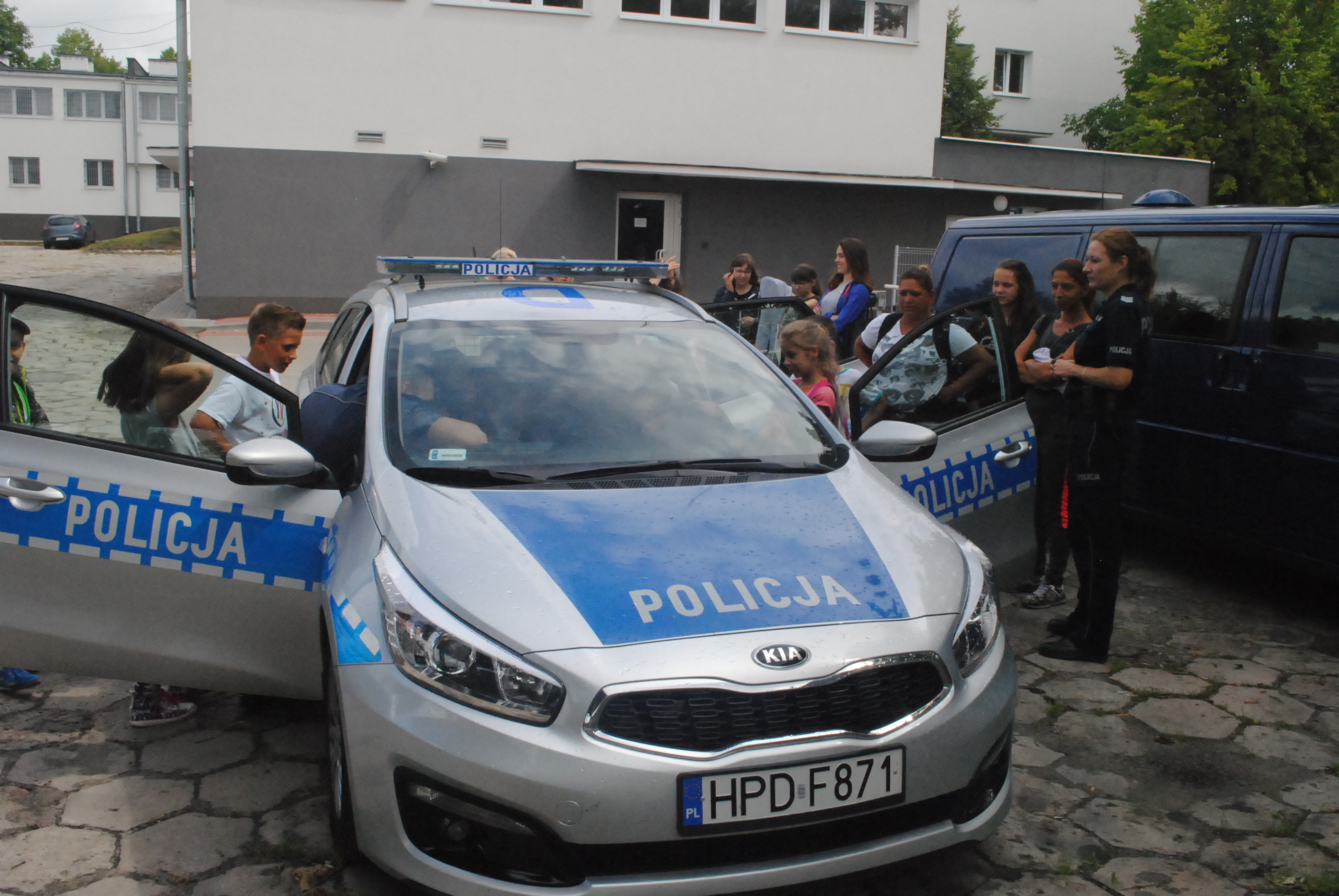 Później był monitoring miejski, gdzie można było zobaczyć miasto widziane okiem kamer. Później policjanci zaprezentowali dzieciom niektóre elementy wyposażenia, jakim na co dzień dysponują stróże prawa. Na koniec zaprezentowany został dzieciom radiowóz.