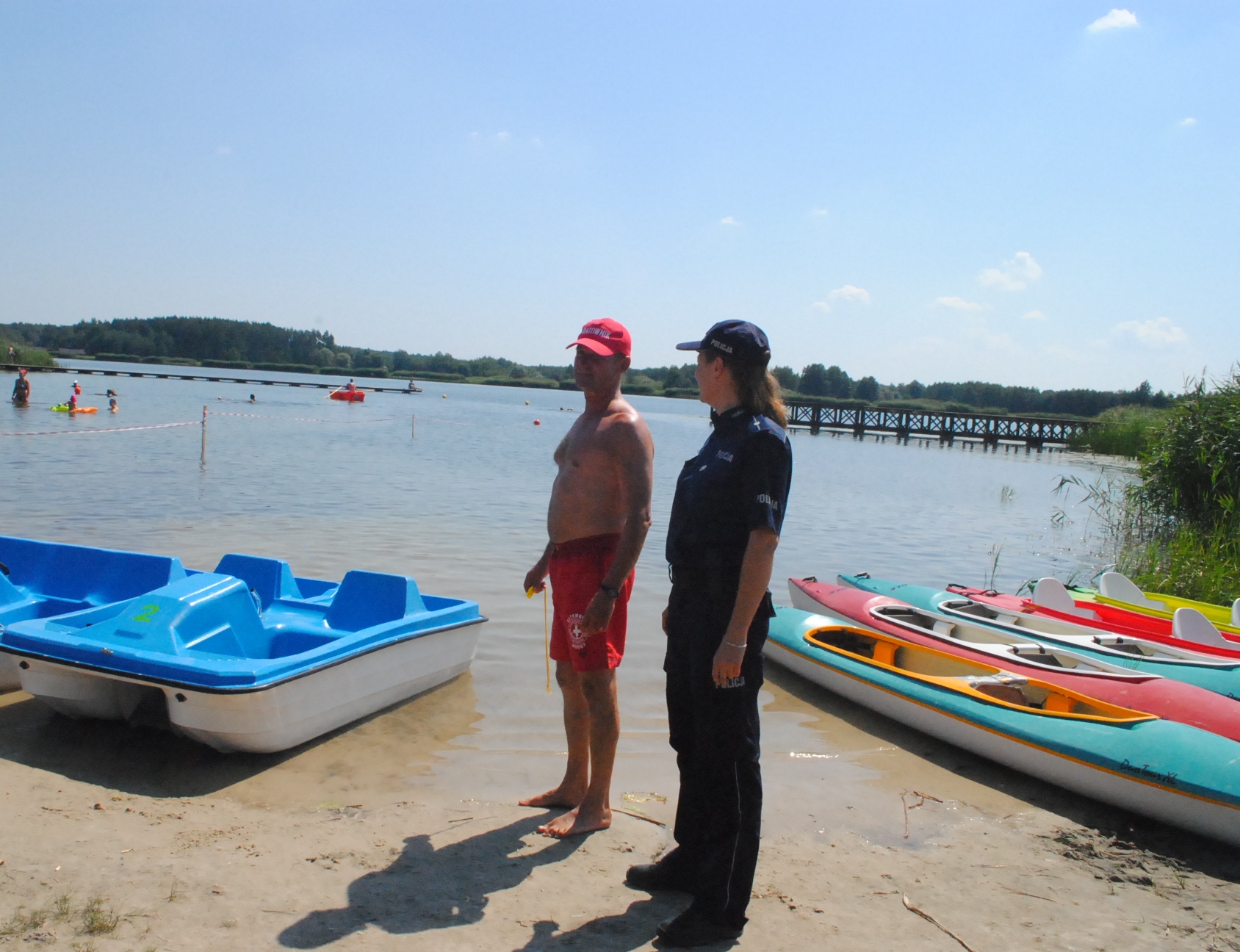 Aktualna pogoda sprzyja wypoczynkowi na świeżym powietrzu, szczególnie na terenach przyległych do zbiorników wodnych. W ramach realizacji zadań związanych z profilaktyką policjanci z Wydziału Prewencji chełmskiej komendy odwiedzili wczoraj Zalew Natalin, Dębowy Las oraz Husynne. W ramach akcji informacyjno-edukacyjnej „Kręci mnie bezpieczeństwo… nad wodą”, rozmawiali z osobami tam wypoczywającymi. Swoją uwagę skupili też na osobach odpowiedzialnych za ratownictwo wodne oraz wypożyczających sprzęt wodny. Głównym celem tej akcji jest propagowanie właściwego zachowania na akwenach wodnych. Policjanci przypominali o zasadach bezpiecznej kąpieli oraz bezpiecznego uprawiania sportów wodnych, co w efekcie ma wpłynąć na ograniczenie ilości wypadków nad wodą.
