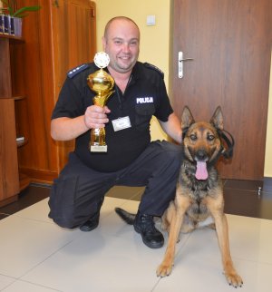 Dzisiaj st. asp. Grzegorz Stefański odebrał puchar za zwycięstwo w Wojewódzkich Eliminacjach Do Kynologicznych Mistrzostw Policji. Wraz z owczarkiem belgijskim Jazgotem startował w kategorii wyszukiwania zapachu narkotyków. Teraz w dniach 5-8 września będą reprezentować województwo lubelskie na XVII Kynologicznych Mistrzostwach Policji w Sułkowicach.