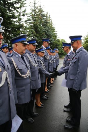 Dzisiejsze obchody Święta Policji rozpoczęły się mszą świętą, która odprawiona została o godz. 8.30 w Bazylice pw. Narodzenia Najświętszej Maryi Panny w Chełmie. Następnie o godz. 10.00 na placu apelowym przed budynkiem komendy odbył się uroczysty apel, w którym uczestniczył Komendant Wojewódzki Policji w Lublinie insp. Robert Szewc oraz zaproszeni goście. Swoją obecnością zaszczycili nas przedstawiciele parlamentu, urzędu marszałkowskiego, władz samorządowych, służb mundurowych i różnych instytucji, z którymi na co dzień współpracują policjanci. Podczas tej uroczystości funkcjonariuszom zostały wręczone awanse na wyższe stopnie policyjne oraz nagrody pieniężne. W tym roku awansowało 87 funkcjonariuszy. Komendant Wojewódzki Policji w Lublinie złożył wszystkim policjantom i policjantkom oraz pracownikom cywilnym życzenia i podziękowania za trud i wytrwałość w realizacji codziennych zadań. Policjanci otrzymali również podziękowania i życzenia od zaproszonych gości.