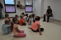 Policjanci z chełmskiej komendy byli z wizytą u uczestników półkolonii zorganizowanych w Chełmie. Podczas spotkania funkcjonariusze przekazali dzieciom wiedzę odnośnie ich bezpieczeństwa. Nie zabrakło też pytań o to, jak na co dzień wygląda praca policjantów.