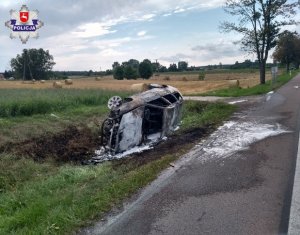 Do zdarzenia doszło wczoraj około godziny 14:00 w miejscowości Marynin w gminie Siedliszcze na drodze krajowej nr 12. Z ustaleń policjantów wynika, że kierujący samochodem marki Audi, 27-letni mieszkaniec powiatu Hrubieszowskiego najechał i uderzył w tył jadącego przed nim samochodu marki Ford, który zatrzymywał się do skrętu w lewo. Pojazdem tym kierował 35-letni mieszkaniec gminy Siedliszcze. W wyniku tego zdarzenia audi wjechało do rowu i zapaliło się. Przybyła na miejsce straż pożarna ugasiła palący się samochód. W wyniku tego zdarzenia nikt nie odniósł obrażeń. Obaj kierowcy byli trzeźwi.
