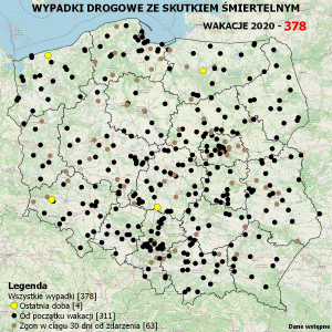 POLICYJNA MAPA WYPADKÓW DROGOWYCH ZE SKUTKIEM ŚMIERTELNYM - WAKACJE 2020